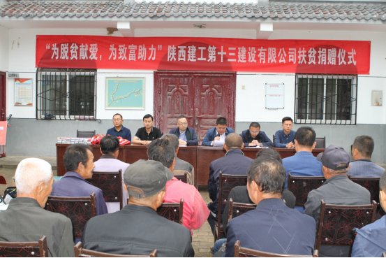 按照延安市市委、市政府脫貧攻堅安排部署,9月11日,陜建十三建公司在延安市寶塔區(qū)河莊坪鎮(zhèn)崔圪嶗村開展“為脫貧獻愛、為致富助力”活動。十三建公司總會計師王磊,河莊坪鎮(zhèn)黨委書記劉震,河莊坪鎮(zhèn)副鎮(zhèn)長侯杰出席本次捐贈儀式。