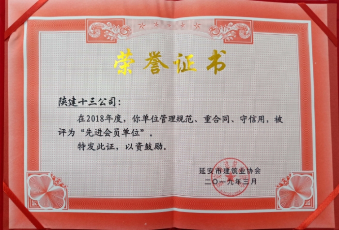 2018年度延安市建設(shè)工程質(zhì)量安全生產(chǎn)先進(jìn)集體