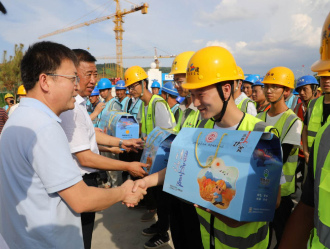 8月10日,延安市政協(xié)副主席、市總工會(huì)黨組書(shū)記、主席黑樹(shù)林一行來(lái)到陜建十三建公司南泥灣紅色文化小鎮(zhèn)項(xiàng)目慰問(wèn)項(xiàng)目一線(xiàn)建設(shè)者,為他們送去茶葉、蜂蜜、綠豆、小米等防暑降溫物品。市總工會(huì)副主席、女職委主任鄭艷霞,南泥灣開(kāi)發(fā)區(qū)黨工委副書(shū)記折克銀,市總工會(huì)辦公室副主任、困難職工幫扶中心主任惠瑞國(guó),市總工會(huì)辦公室副主任、宣教部負(fù)責(zé)人康靖華,陜建十三建公司紀(jì)委書(shū)記、工會(huì)主席張軍祥出席活動(dòng)。