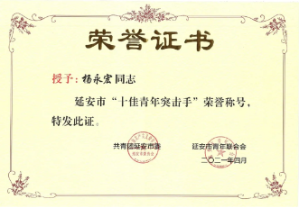 陜建十三建集團團委被授予“延安市五四紅旗團委”稱號,集團南泥灣現(xiàn)代農(nóng)業(yè)示范園項目青年突擊隊被授予“延安市青年突擊隊”稱號,楊永宏被授予“延安市十佳青年突擊手”稱號,薛淑元被授予“延安市優(yōu)秀共青團干部”稱號,楊超被授予“延安市青年突擊手”稱號,李大衛(wèi)被授予“延安市青年崗位能手”稱號。