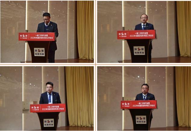 集團(tuán)副總經(jīng)理鐘卓寶宣讀《關(guān)于表彰2021年度先進(jìn)集體和先進(jìn)個(gè)人的決定》;總工程師王弘起宣讀《關(guān)于表彰2021年度創(chuàng)優(yōu)奪杯項(xiàng)目和優(yōu)秀科技成果的決定》;副總經(jīng)理景益濤宣讀《關(guān)于表彰抗疫先進(jìn)集體和個(gè)人的決定》;副總經(jīng)理張?chǎng)蝹バx《關(guān)于表彰2021年度最佳合作共贏單位的決定》。