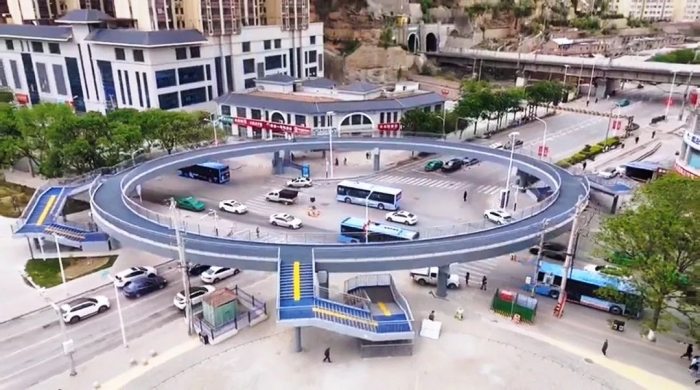 項(xiàng)目配建了一座四向互通式過街天橋--天橋設(shè)計(jì)為橢圓形,周長174米,欄桿高1.45米,橫跨柳林路及百合路,串聯(lián)七里鋪公園南北地塊與道路東側(cè)區(qū)域。天橋建成后,將有效解決二莊科十字路口人車混行問題,通行效率得到大幅度提升,為市民出行筑起了“安全屏障”。