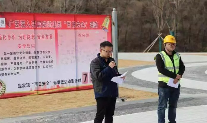 儀式上,陜建集團南泥灣紅色文化小鎮(zhèn)建設項目常務副經理屈曉東安排部署2019年重點安全注意事項,并貫穿落實集團公司“百日安全”活動的宗旨。會上各參建單位公司經理、項目經理積極講述“百日安全”活動的重要性。開發(fā)公司工程管理部長白彥明并發(fā)表講話。